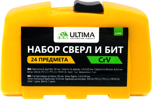 ГлавнаяДом, садИнструментыНабор сверл и бит Ultima, 24 предмета Набор сверл и бит Ultima, 24 предмета