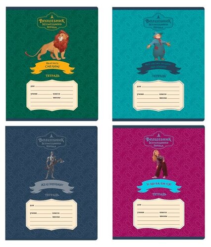 Тетрадь BG серии Волшебник изумрудного города в линию. Формат А5 (165*205 мм). Вид крепления скрепка. Внутренний блок это 12 листов, офсетная бумага плотностью 60 г/м.