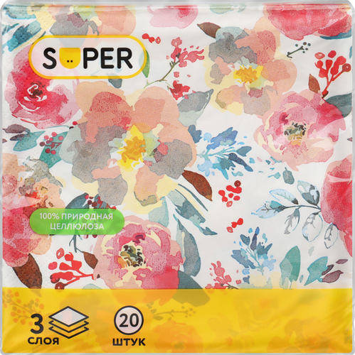 ГлавнаяВсе для кухниОдноразовая посуда, салфеткиСалфетки бумажные Super Стиль 3-слойные, 20 штук Салфетки бумажные Super Стиль 3-слойные, 20 штук