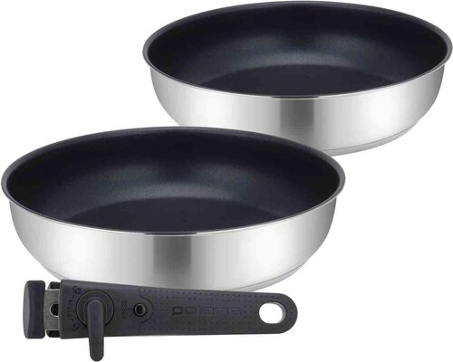 • Высококачественная нержавеющая сталь 18/10. • Высокопрочное антипригарное покрытие. • Состав набора: сковороды 24 см и 26 см. • Съемная ручка с двойной защитой. • Подходит для всех видов плит, включая индукцию. POLARIS — международный бренд, известный высококачественной бытовой техникой и посудой, сочетающий инновации и удобство. Ключевой составляющей производственного цикла компании является контроль за созданием техники на всех этапах. SWISS Collection — специально разработанная коллекция для компактного хранения, удобна в использовании за счет складных и съемных ручек. Посуду предложенной коллекции от бренда POLARIS можно использовать на всех типах плит, в духовке и в подаче. Универсальные крышки с регулируемым диаметром подходят для разной посуды и экономят место. Эти решения делают посуду не только практичной и долговечной, но и значительно повышают комфорт и эффективность работы на кухне, экономя ценное пространство.
