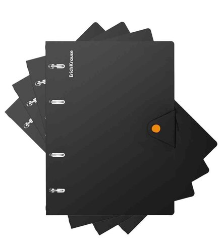Тетрадь Accent, А5, 80 листов, в клетку, на кнопке, на кольцах, в ассортименте от бренда ErichKrause. Обложка из высококачественного износостойкого матового пластика с фактурой «песок». Яркие фиксирующие кнопки. В блоке 80 листов в клетку. Бумага офсетная плотностью 60 г/м2. Цвет линовки – синий. Скругленные уголки обложки. Тип скрепления – кольца. Обложка фиксируется клапаном с кнопкой. Прорези под кольца оснащены фиксаторами.
