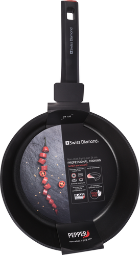 Сковорода Swiss Diamond Pepper станет верным помощником в приготовлении ваших любимых блюд. Антипригарные качества покрытия из нанокомпозита, высокая сопротивляемость к механическому повреждению, возможность использования неострых металлических приборов и чистки в посудомоечной машине. Максимальный комфорт и устойчивость благодаря удобной форме отлитого под давлением корпуса из сплава алюминия и кремния, предназначенного для изделий пищевого назначения. Ровное основание для использования на электроплитах, в том числе со стеклокерамической поверхностью, а также на газовом огне. Эргономичные ручки из термостойкого бакелита, разработанные с учетом необходимого противовеса, позволяют использовать посуду и в духовке.