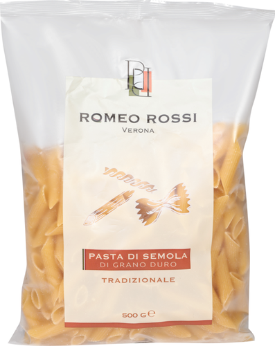 Паста Romeo Rossi Penne rigate, из муки твердых сортов пшеницы – это тонкая полая паста со срезанными краями. Благодаря своей форме она равномерно пропитывается и идеально сочетается с разными соусами: густыми томатными, нежными сливочными и песто.