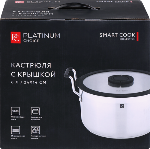 Кастрюля Smart Cook, нержавеющая сталь, силикон, 6 л от торговой марки Platinum Choice – изделие из высококлассной нержавеющей стали. Можно использовать на газовых, электрических, стеклокерамических плитах. Благодаря высокой теплопроводности в кастрюле готовить можно на низкой мощности плиты, что позволяет снизить затраты на электроэнергию.