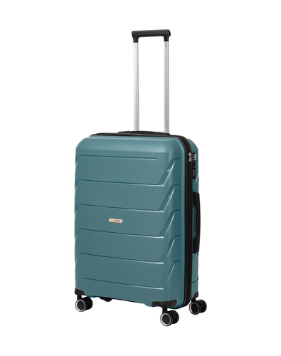 Чемодан Inwin темно-зеленого цвета прочен, легок и экологичен. Он имеет усиленную конструкцию и отличную маневренность. Чемодан снабжен многоступенчатой телескопической ручкой и утопленным в корпус комбинационным TSA-замком. Аксессуар изготовлен из ударопрочного полипропилена.