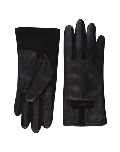 Перчатки женские комбинированные изготовлены из мягкой натуральной кожи и трикотажа. Такой аксессуар надежно защищает руки от ветра и холода и станет удачным дополнением к повседневному демисезонному гардеробу.
