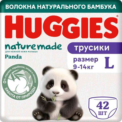 ГлавнаяДля детейПодгузникиТрусики-подгузники Huggies Naturemade Panda L (9-14 кг), 42 шт Трусики-подгузники Huggies Naturemade Panda L (9-14 кг), 42 шт