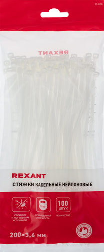 Стяжка Rexant кабельная нейлоновая 200x3,6 мм белая 100 шт