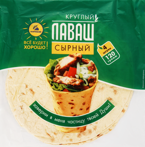 Лаваш Каравай Сырный круглый – это мучное изделие, приготовленное из теста с добавлением сыра. Обладает нежным вкусом и ароматом расплавленного сыра. Подходит для закусок, рулетов, а также как дополнение к первым и вторым блюдам. Лаваш сохраняет полезные свойства злаков и богат витаминами группы B.